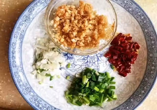 各種配料:香蔥,蒜蓉,紅干辣椒