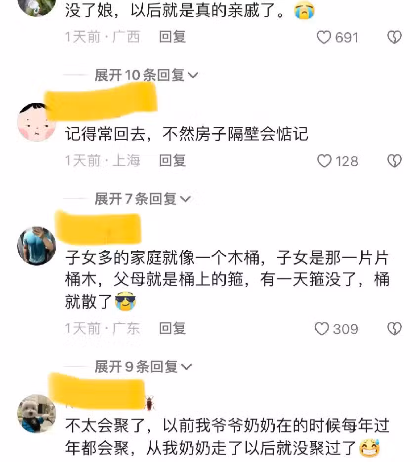 這一代人大家也許還會像親戚一樣走走,再等到下一代,估計都沒什麼來往了。