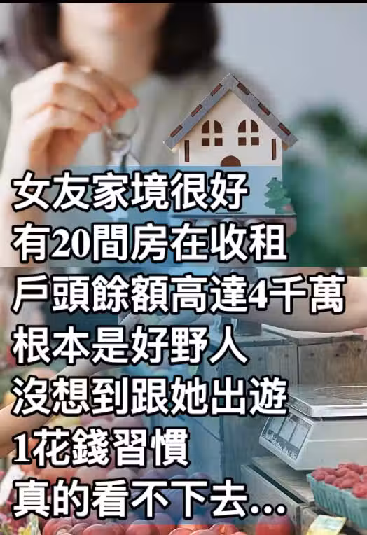 女友家境很好、有20間房在收租,戶頭餘額高達4千萬,根本是好野人,沒想到跟她出遊,1花錢習慣真的看不下去…