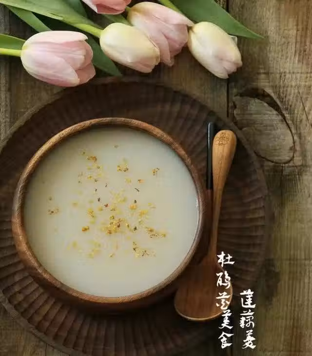 【製作步驟】蓮藕洗凈切小塊,放清水裡沖洗後放入料理機里打成泥,將蓮藕泥放入鍋里,加入3碗清水,煮至沸騰並不停地攪拌;煮好的蓮藕羹加入2勺糖桂花調味即可,也可以再撒少許干桂花提香氣。