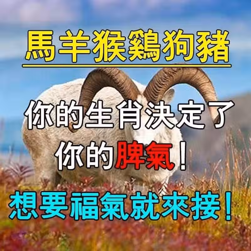 生肖屬【馬羊猴雞狗豬】你的生肖,決定了你的脾氣!想要福氣就來接
