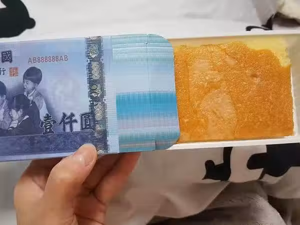 貼文一出立刻引發熱烈討論,大家看到她的貼文都羨慕地問:「公司有缺人嗎?」但卻有眼尖網友發現,這五疊鈔票上的流水號都一樣,就連中央銀行的字樣也被改成「木匠手作銀行」,忍不住質疑:「木匠銀行是哪一國的通用幣阿?」對此,女網友也出面為大家解答,表示這些千元鈔其實只是裝蛋糕的紙盒,裡面一打開來是檸檬糖霜蛋糕,「而且菜單上還寫XX科技百萬紅包」,因為公司除了發這盒蛋糕,還有另外送紅包袋。