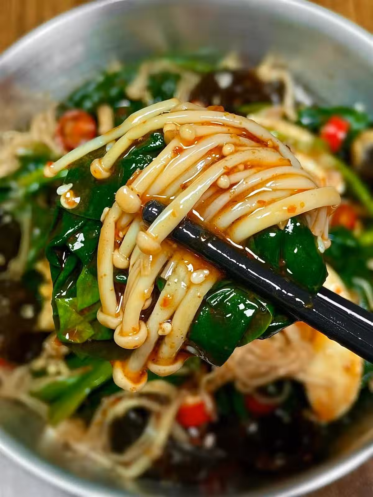 破防了…😭這玩意兒真的巨巨巨掉秤!!菠菜木耳拌金針菇!