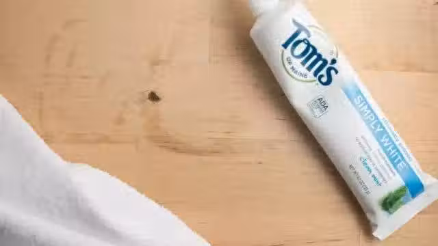 衣服被污漬染上後,擠上一點牙膏,來回揉搓幾次。