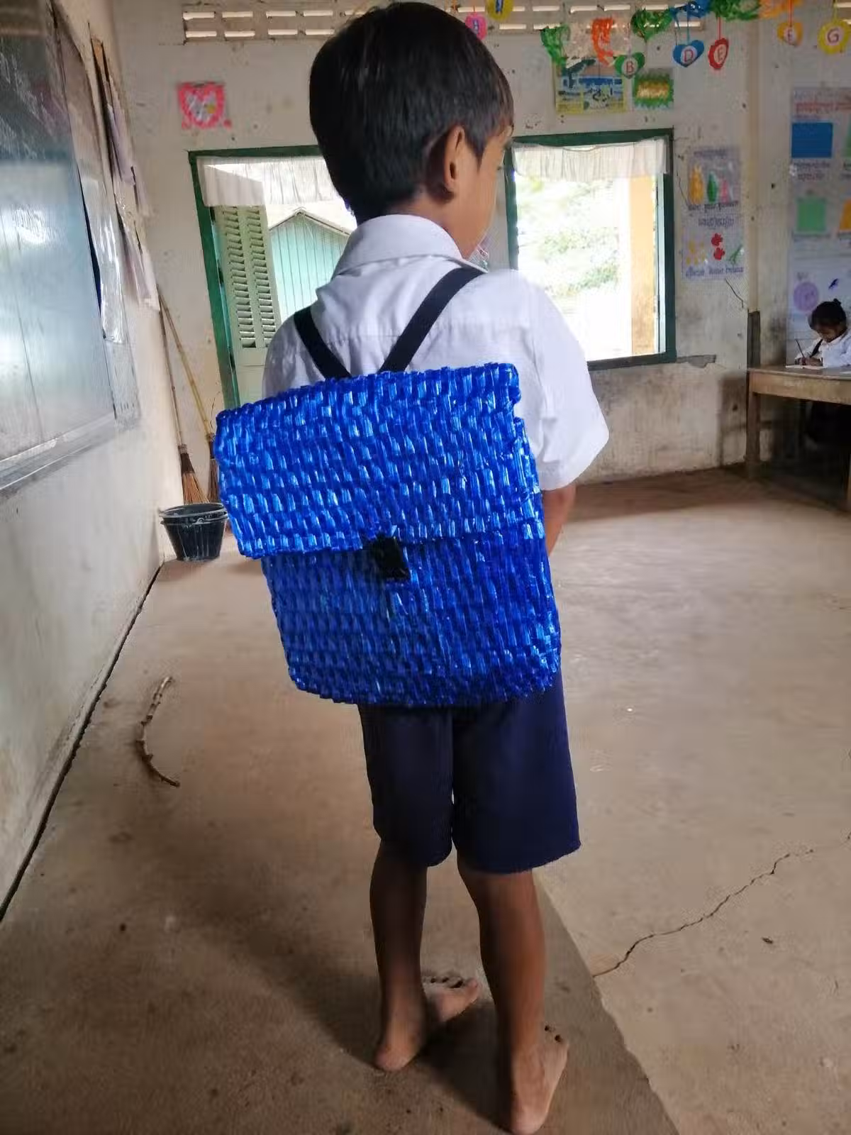 買不起書包!窮爸做粗工「錢全給兒子繳學費」 自責熬夜「一綑塑膠繩做出獨一無二書包」一打開惹哭老師