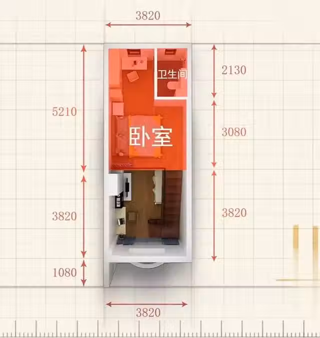 姐姐的臥室有5坪,而且洗手間在第二層空間,弟弟每次去洗手間都會穿過姐姐的臥室,這給姐弟二人帶來了很大的生活不便。