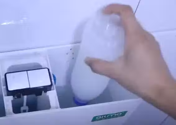 我們可以把它放在我們衛生間馬桶的水箱裡面,我們打開蓋子,然後把這瓶水瓶口朝下。這樣放到馬桶水箱裡面,它是有兩個作用的。