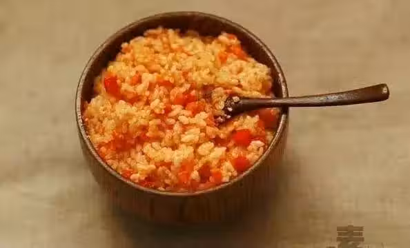 米飯、西紅柿、胡蘿蔔、紅柿子椒、鹽、金蘭醬油