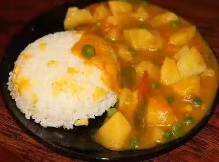 土豆、青椒、西紅柿、青豆、工研咖喱塊、鹽