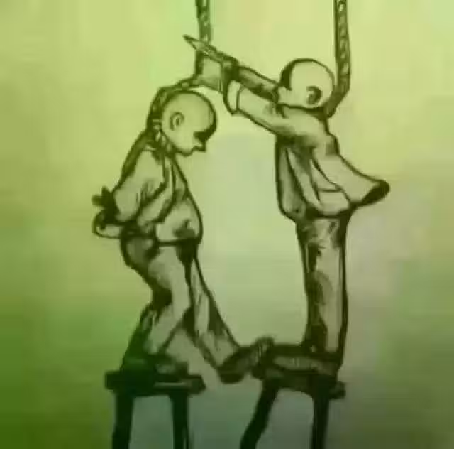 你幫人家剪繩子,人家卻在踢你腳下的凳子。