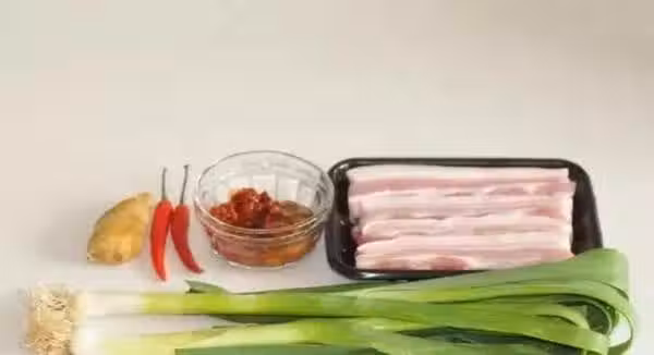 輔料:黃豆醬1勺;豆瓣醬1勺;小米椒2個;薑3片;油適量。