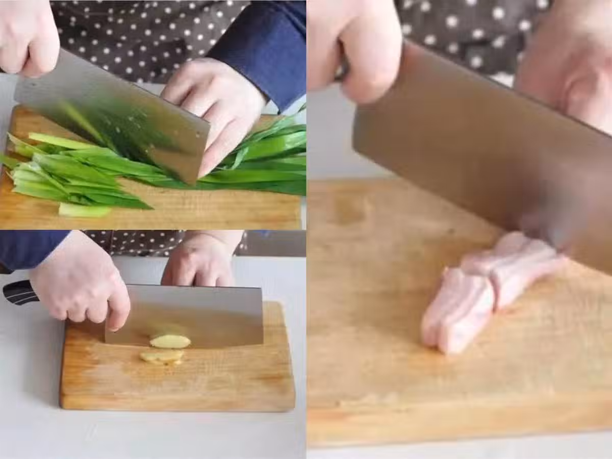 4.鍋里加水,水開後加入肉和薑片煮5分鐘。