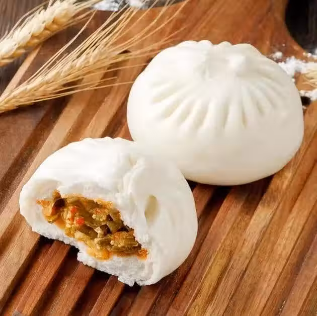 4、面加入酵母水和成光滑的麵糰醒發,然後分成小份擀薄片包成包子,放到涼水蒸鍋里。水開後20分鐘後關火,蓋著蓋子燜5分鐘再開蓋即可。