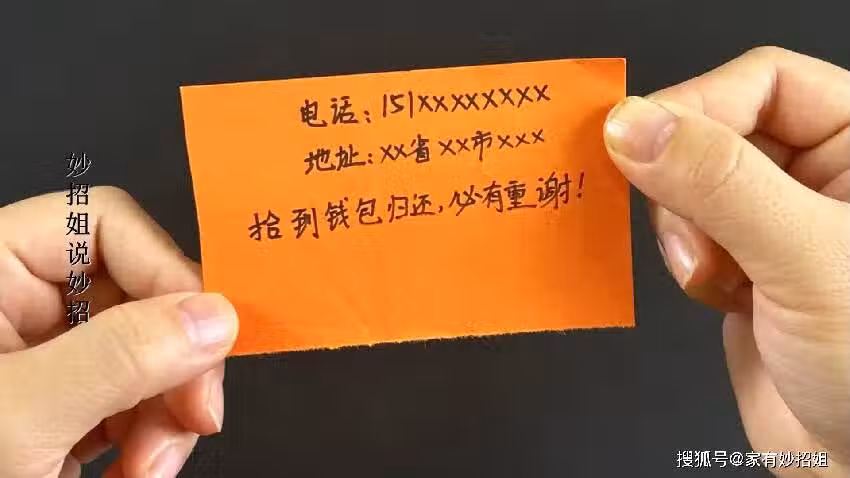 然後,我們將寫好的紙條放在錢包顯眼的位置,這樣當別人撿到你錢包的時候,看到這張紙條就會歸還你了。