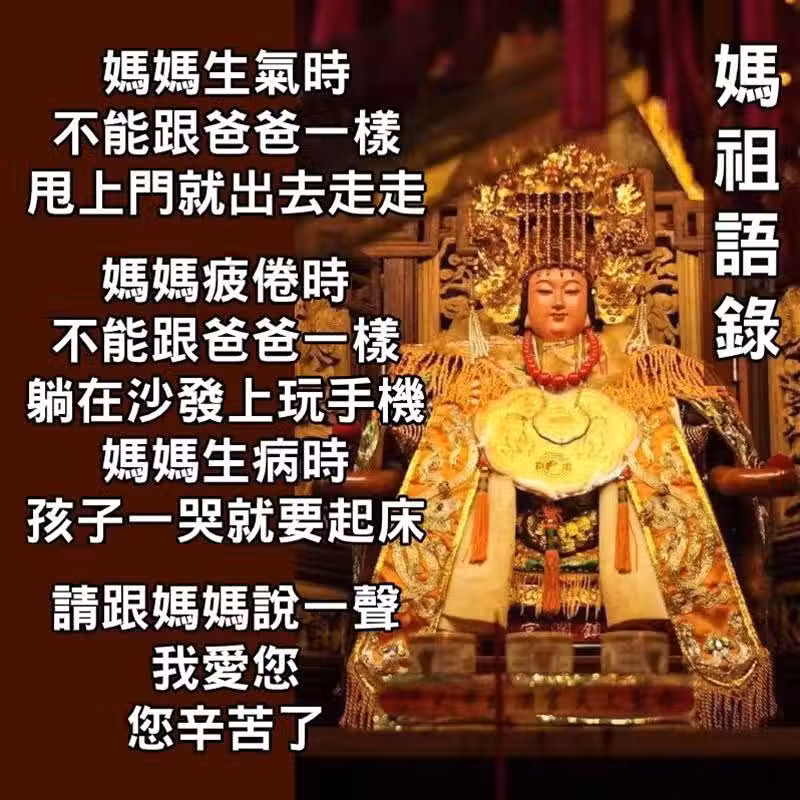 媽祖告誡:百善孝為先,媽媽也有脆弱,請跟媽媽說一聲:「我愛您,您辛苦了」