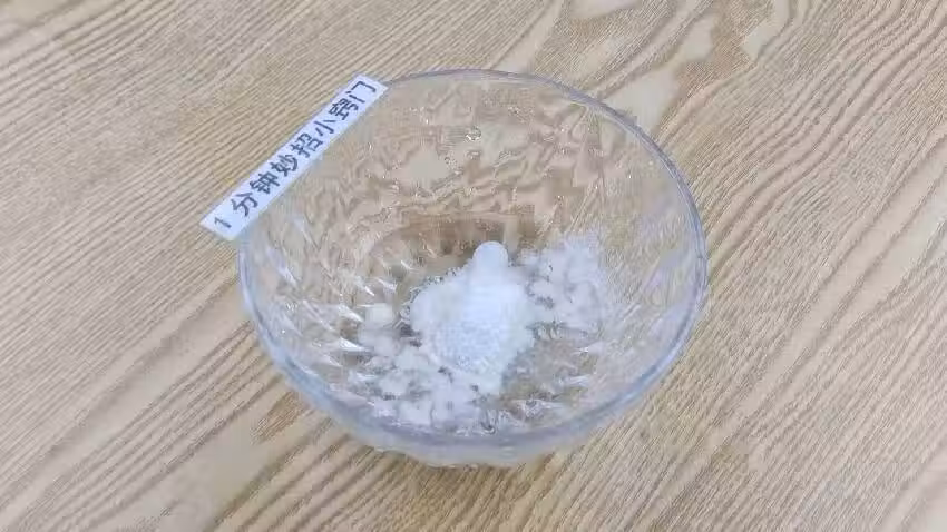 然後我們在裡面倒入一些白醋,白醋可以軟化牆壁上面的一些污漬,或者污垢,這樣我們擦拭起來的時候,就會更加輕鬆。