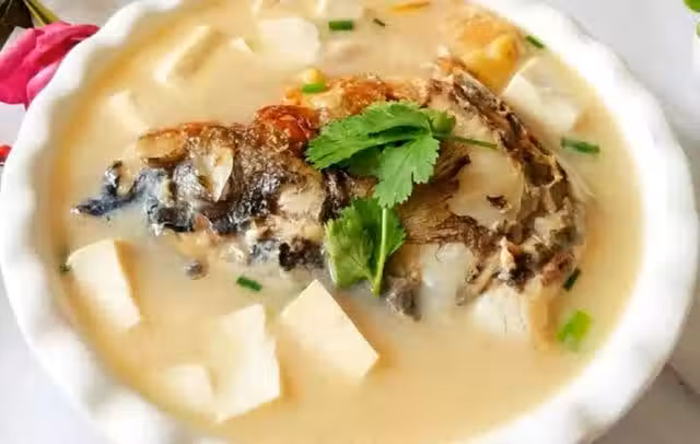 (5)加入適量的胡椒粉、雞精、小蔥蓋上鍋蓋煮至魚頭入味。
