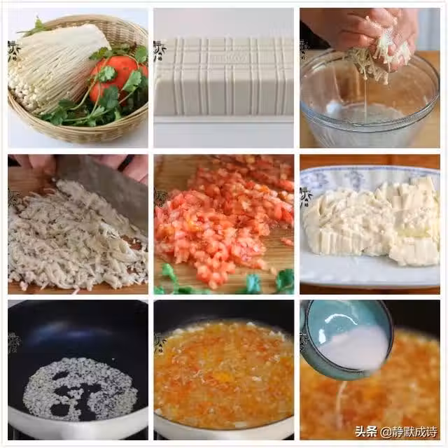 8、添加清水,調入適量鹽,煮開,把豆腐粒和金針菇放下去,再煮上兩三分鐘。