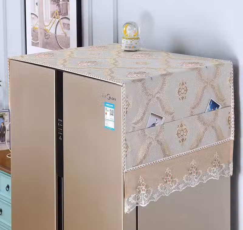 許多為了減少冰箱的灰塵,都會在冰箱上面放個防塵布,防塵布除了塵,且圖案、造型美觀,具有一定的裝飾效果。但是,防塵布的透氣性並不好,會嚴重影響電冰箱的散熱效果,自然而然就會增加耗電量。如果長期散熱不良,就會對機器的內部造成損壞,縮短電冰箱的使用壽命。