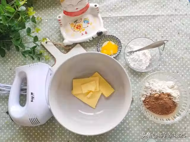 1、把所有食材備好,黃油提前從冰箱取出來,室溫軟化,用手輕輕一戳,有一個小洞,就說明可以了,加入糖粉和鹽。