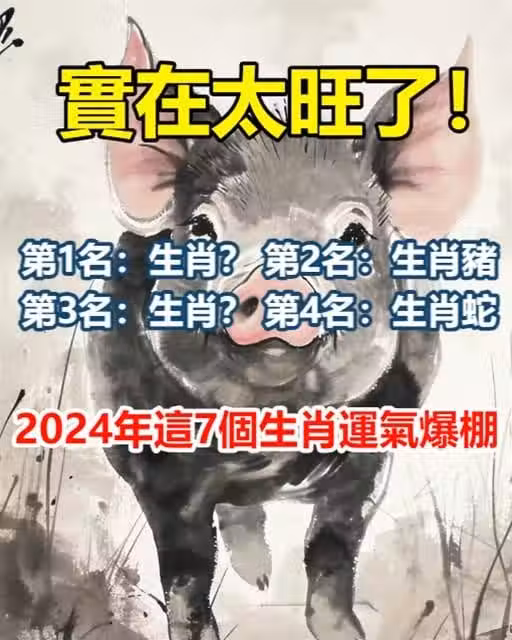 實在太旺了!2024年這7個生肖「千萬不要惹」 他們「前有貴人的相助」後有財神招財 第1名:生肖? 第2名:生肖豬 第3名:生肖? 第4名:生肖蛇