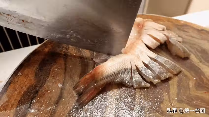 1.準備新鮮的鱸魚一條,先用刀颳去魚鱗,去掉魚鰓,從魚頭處下刀,去掉魚頭,再從魚背處片開,去除內臟,把魚骨去掉平鋪在菜板上,用刀切成一厘米寬的長條,清洗乾淨放入盆中。