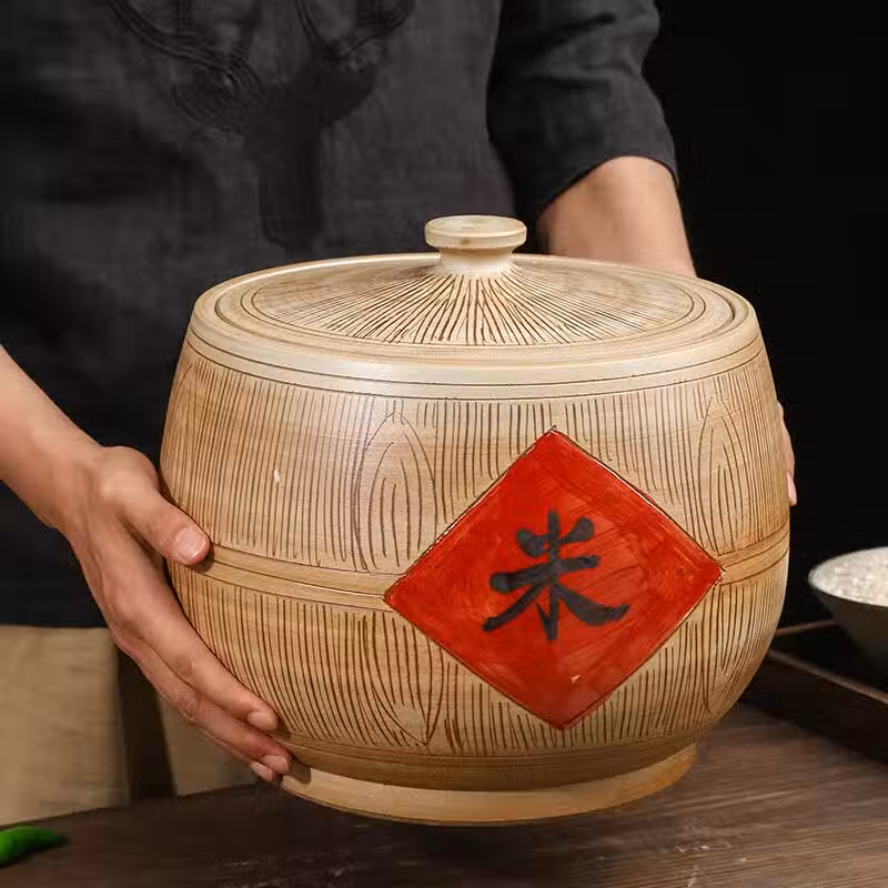 其實,從風水學的理論來說,塑料盒屬於五行火;大米屬於食物,塑料盒屬於火燒食物,消費快,花銷大;而陶瓷燒制的大米缸,則寓意著五行土。