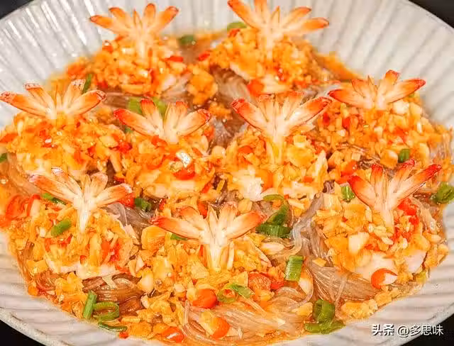 這道粉絲蒸蝦仁的尾巴像一朵花一樣,不僅好看,寓意也特別美好,在過年吃多了油膩的時候一定要來這道特別的鮮靈的菜,絕對是招待親朋好友的一道硬菜,你們快快收藏,馬上就可以用起來了