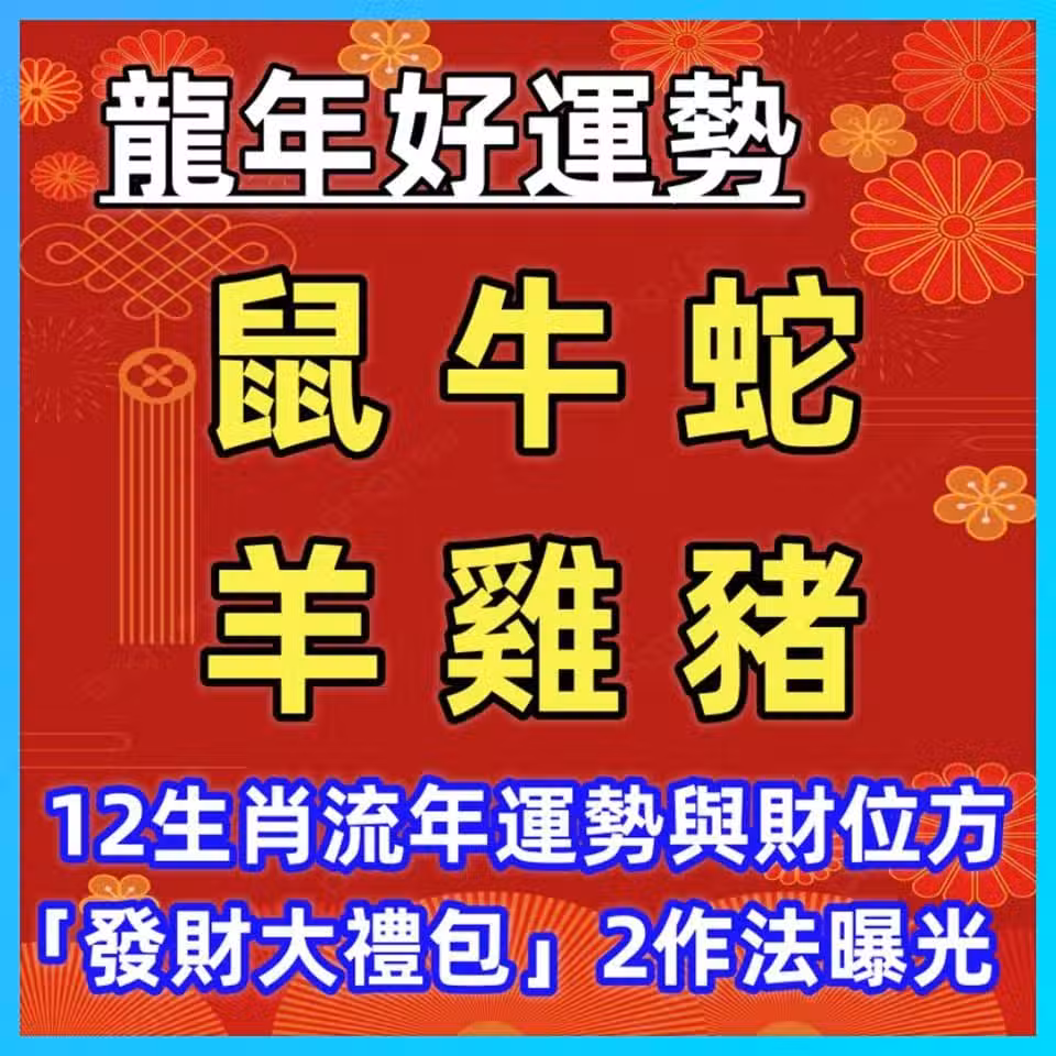 人生後運規劃師徐震諒分享12生肖龍年流年運勢,並建議趁農曆春節在「本命財位方」擺放「發財大禮包」,創建自己的財庫,確保2024甲辰龍年走在事業發達、大拓財源的路上!