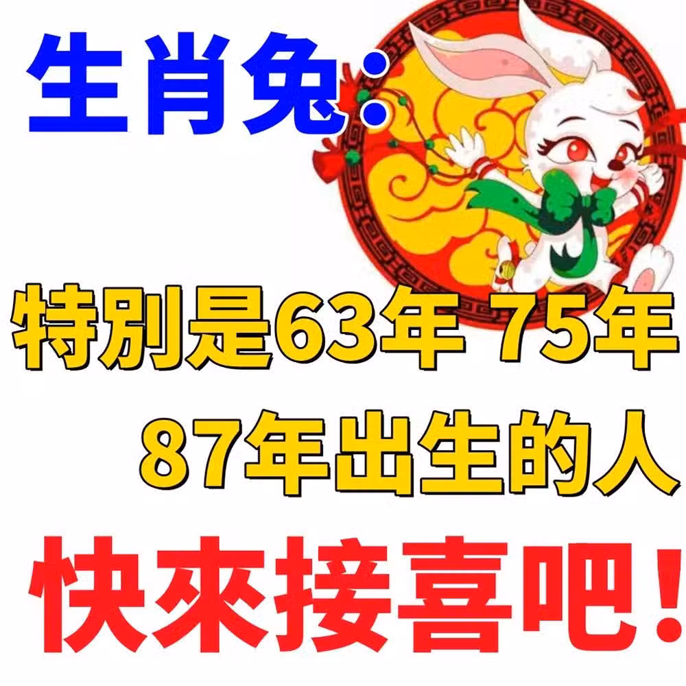 生肖兔:特別是63年、75年、87年出生的人,快來接喜吧!