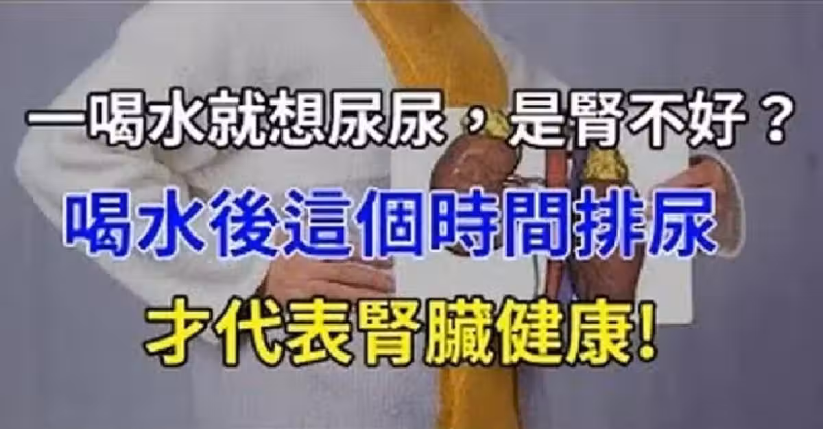一喝水就想尿尿,是腎不好?喝水後這個時間排尿,才代表腎臟健康 !