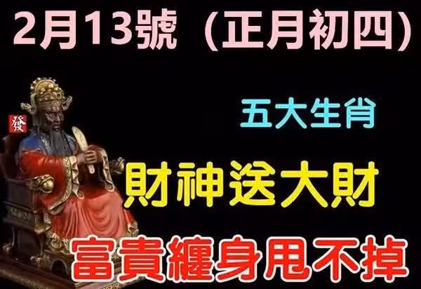 2月13號(正月初四)財神送財,富貴纏身甩不掉的生肖