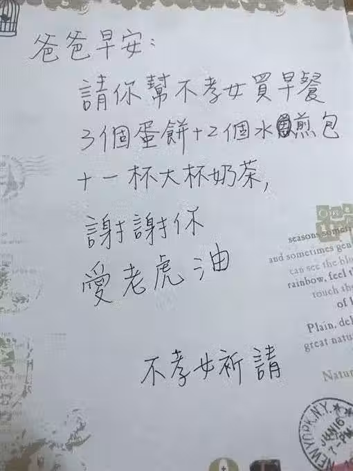 跟爸爸起口角!她隔天撒嬌留字條「請幫不孝女買早餐」 爸爸呆萌買完「發現誤會大了」父女倆笑翻和好