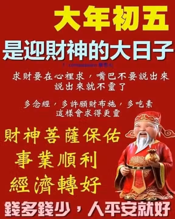 正月初五,記得開門「迎財神」,牢記:「1不出,2不借,3不留」