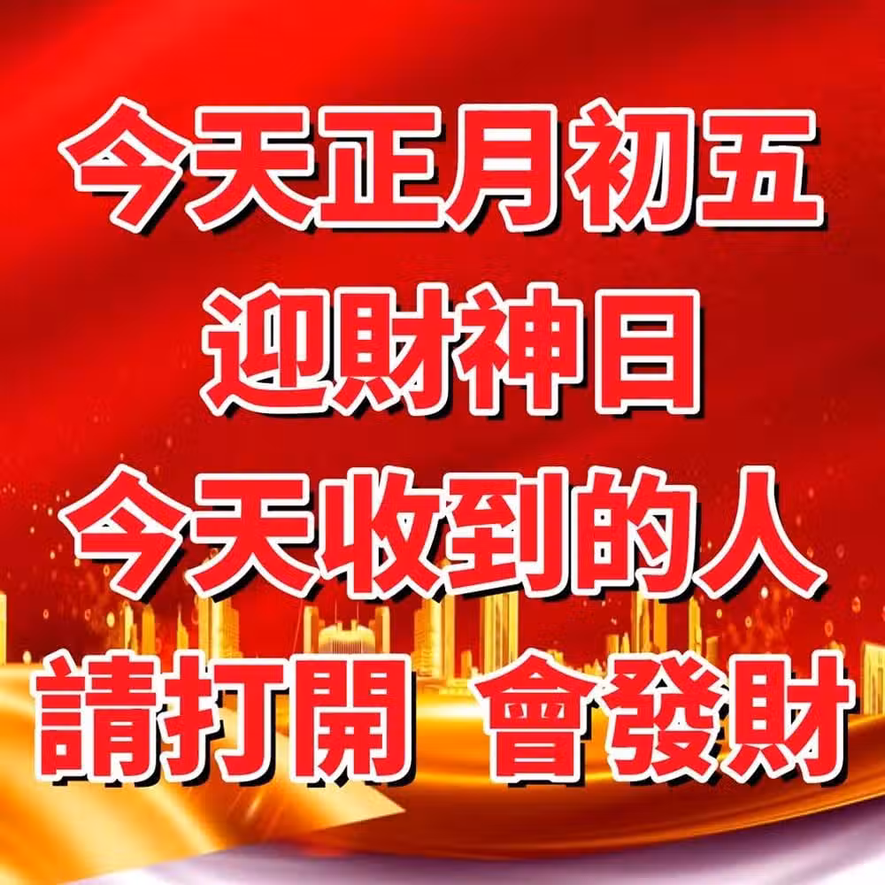 今天正月初五! 迎財神日,今天收到的人請打開! 會發財