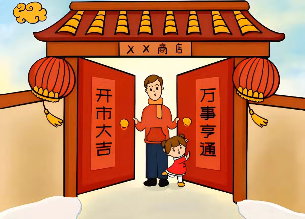 傳統的看法是正月初一為雞日,初二為狗日,初三為豬日,初四為羊日,初五為牛日,初六為馬日,初七為人日。正月初六為「馬日」,這是由於古代人們遠行、經商都要靠騎馬,所以馬又是商業的象徵。大年初六「馬日」是開張的大好日子,有萬馬奔騰、金馬降瑞吉兆,象徵著一年的生意紅紅火火、六六大順。農民「下田備春耕,窮氣送出門」,希望新的一年風調雨順;商人開市做生意,期盼新的一年萬事亨通。