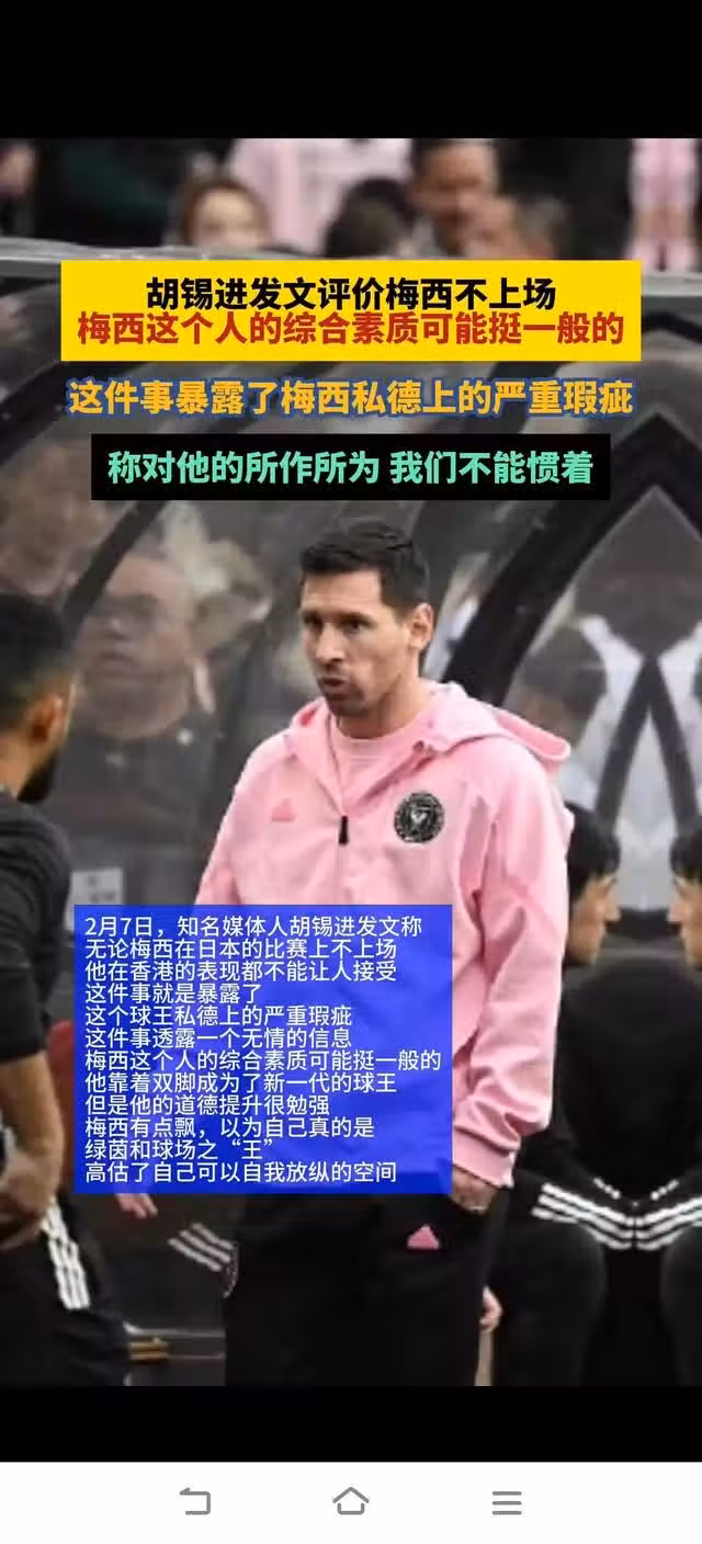 行主辦方在事後發表的聲明中指責梅西在比賽中表現欠佳,並對其態度和表現進行了不公平的批評。這一聲明在球迷和媒體中引起了強烈的反響,幾乎所有的球王粉都義憤填膺。