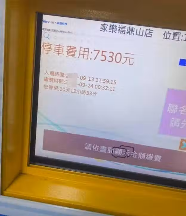 才逛家樂福1小時!離開繳停車費「竟要7530元」 他愣住「立刻去按螢幕」網笑:乾脆連車都不要了