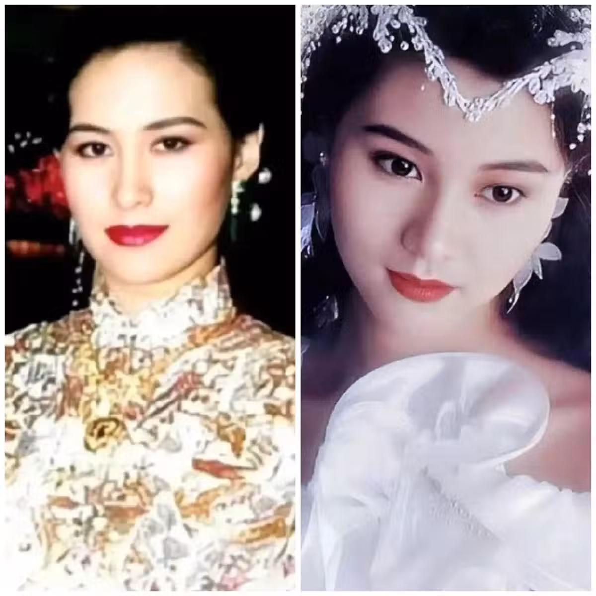 再看二美各自戴皇冠的造型,何超瓊是新娘造型,而李嘉欣是當年選美冠軍的造型,本來李嘉欣這樣看五官舒展大氣,但裝扮和何超瓊比較起來就有點顯得土氣了,其實仔細看,何超瓊就是眼睛輸給了李嘉欣,其他似乎都是何超瓊更精緻些了。