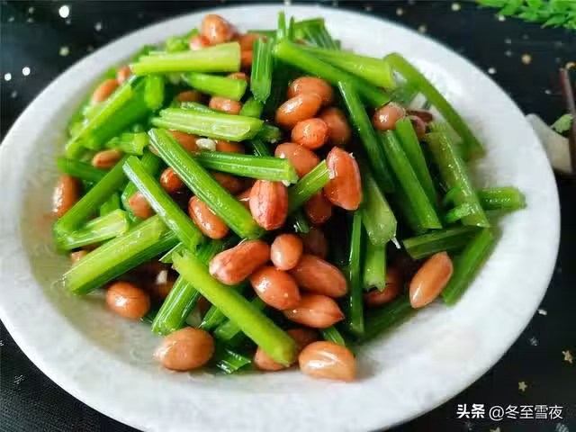 【熗拌芹菜花生米】所需材料:芹菜300克、花生米(生)半碗、油鹽適量、大蒜3瓣、花椒20-30粒、大料2個、