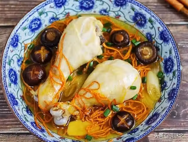 雞腿、蟲草花、香菇、料酒、大蔥、姜、鹽、蔥花。