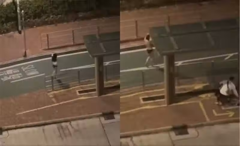 跑到對街後,女子當場脫掉長褲,接著連白色上衣也脫了,全身就這樣僅剩一條黑色內褲,男友被女子的舉動驚到趕來阻攔,撿起女子衣物後強行披在對方身上,遮擋其光溜溜的身體,氣喊「把衣服穿回去!」影片最終,女子冷靜下來後沒有再更進一步的舉動,就這樣被男子抱著。