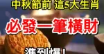 恭喜了7大生肖,在未來三天( 11月20~23日)即將有一筆橫財,準備好收錢吧