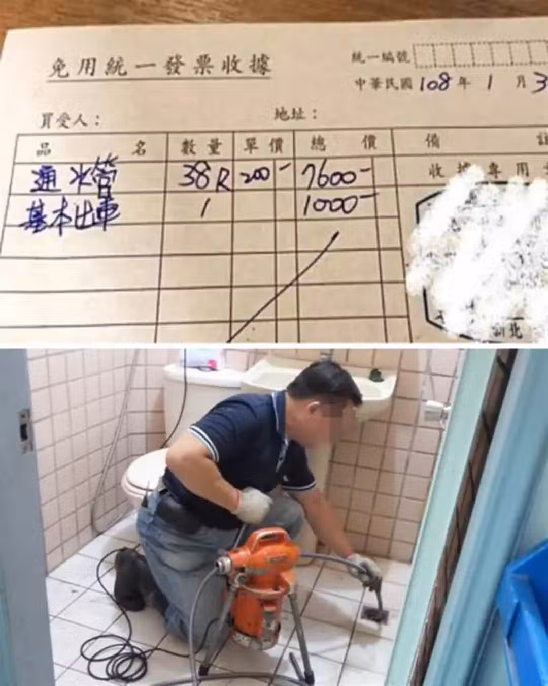 不尊重專業?她請師傅通水管「最後收8700」好睏惑 想討公道「秀賬單最後金額」網友:虧大啦