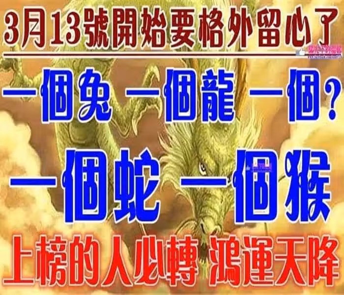 3月13號開始要格外留心了,一個蛇,一個猴,一個兔,一個龍,一個?必要轉