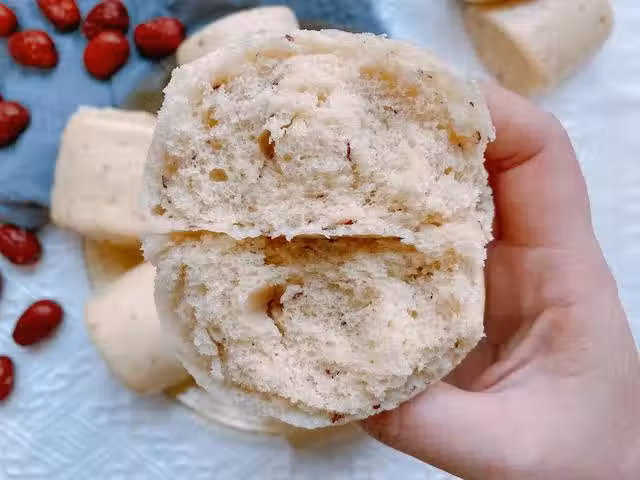 【原材料】麵粉600g、山藥250g、紅棗80g、牛奶200ml、酵母6g、白糖15g;