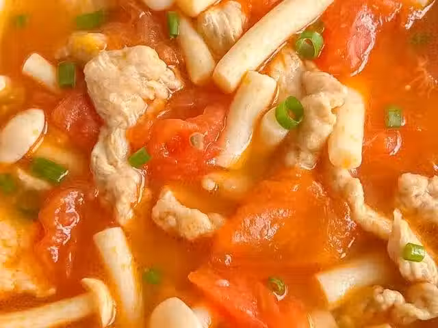 準備食材:番茄,白玉菇,瘦肉,蔥花。