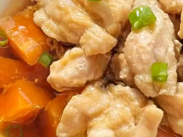 準備食材:胡蘿蔔,瘦肉,薑片,蔥段。