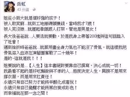 後來因緣際會下,岳虹得到加入演藝圈的機會,爸爸也從苗栗上來找她,當時真的好開心。