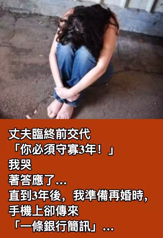 丈夫臨終前交代「你必須守寡3年!」我哭著答應了… 直到3年後,我準備再婚時,手機上卻傳來「一條銀行簡訊~」